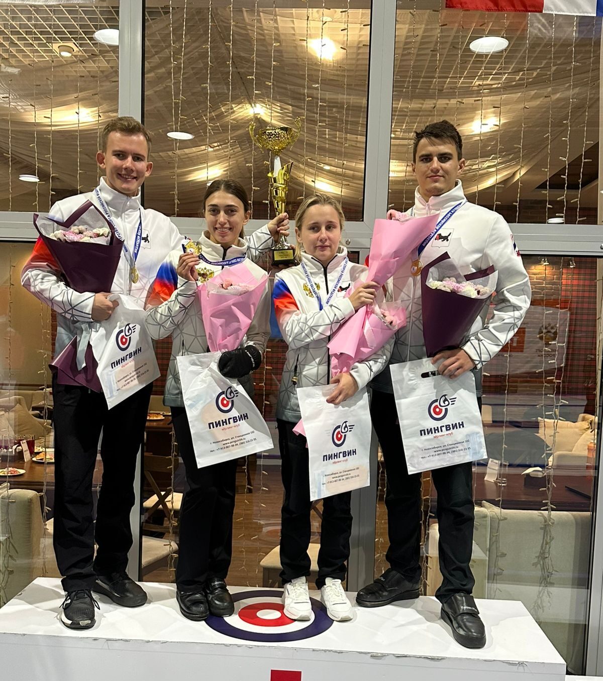 Победители Кубка России среди смешанных команд – Валерия Денисенко, Николай Лысаков, Андрей Дудов и скип Елизавета Трухина. Спортсмены тренируются в областной спортивной школе олимпийского резерва “Россия” под руководством Анны Трухиной.